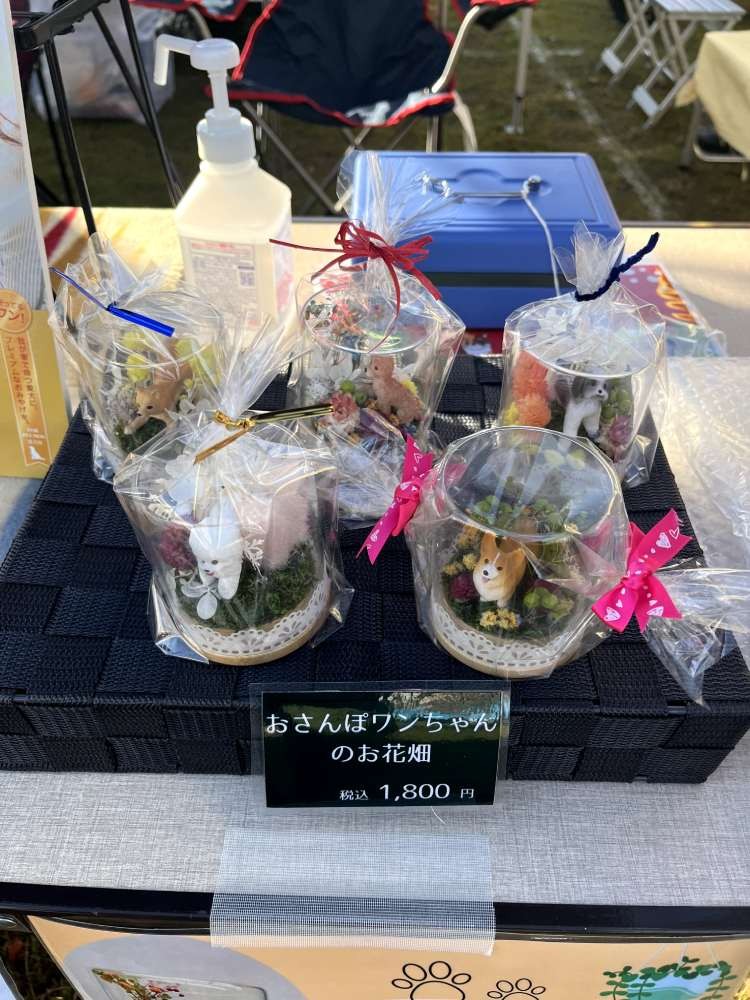 今回もう一つ販売したのが、ドライフラワーです。「なぜドライフラワー?」と思われるかもしれませんが、最近はペットを中心としたインテリアや写真撮影用のアイテムとして人気が高まっています。愛犬と一緒に過ごす空間を少しおしゃれに彩りたい、という飼い主さんのニーズに応えた商品で、こちらも多くの方にお手に取っていただきました!