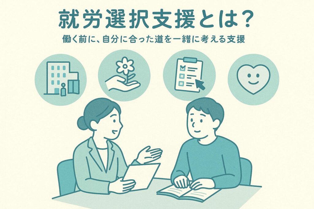 A. 「就労選択支援」は、これから働きたい人が“どんな働き方や事業所が自分に合うか”を一緒に考える福祉サービスです。見学や体験を通して、自分のペースで次のステップを見つけられます。