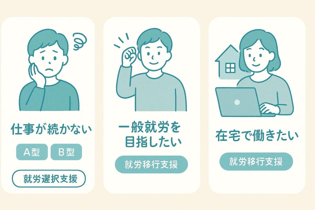 | 仕事が続かない | A型 / B型 / 就労選択支援 |