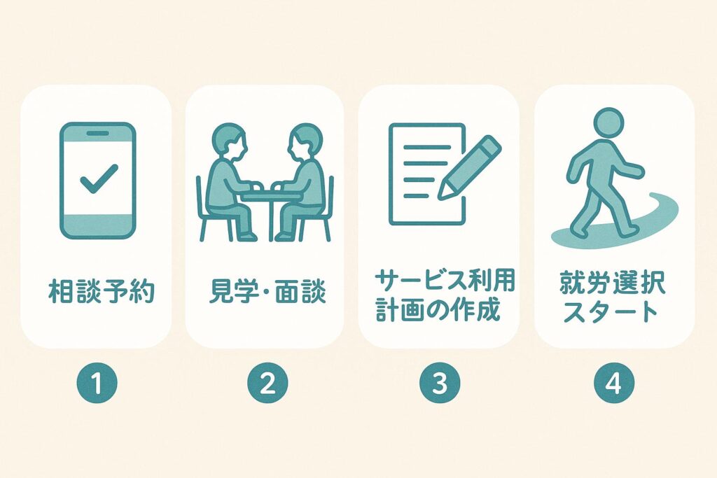 体験を通して「自分に合う場所」を見つけ、その後に訓練型の支援(就労移行支援・B型など)へ進む流れになります。